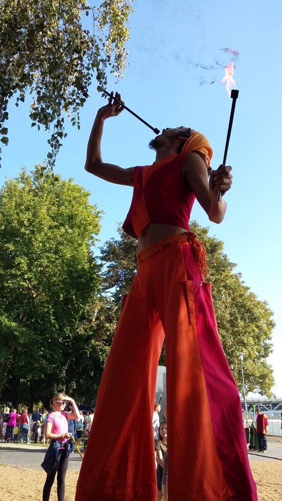 firedance, juggler, stilt walker