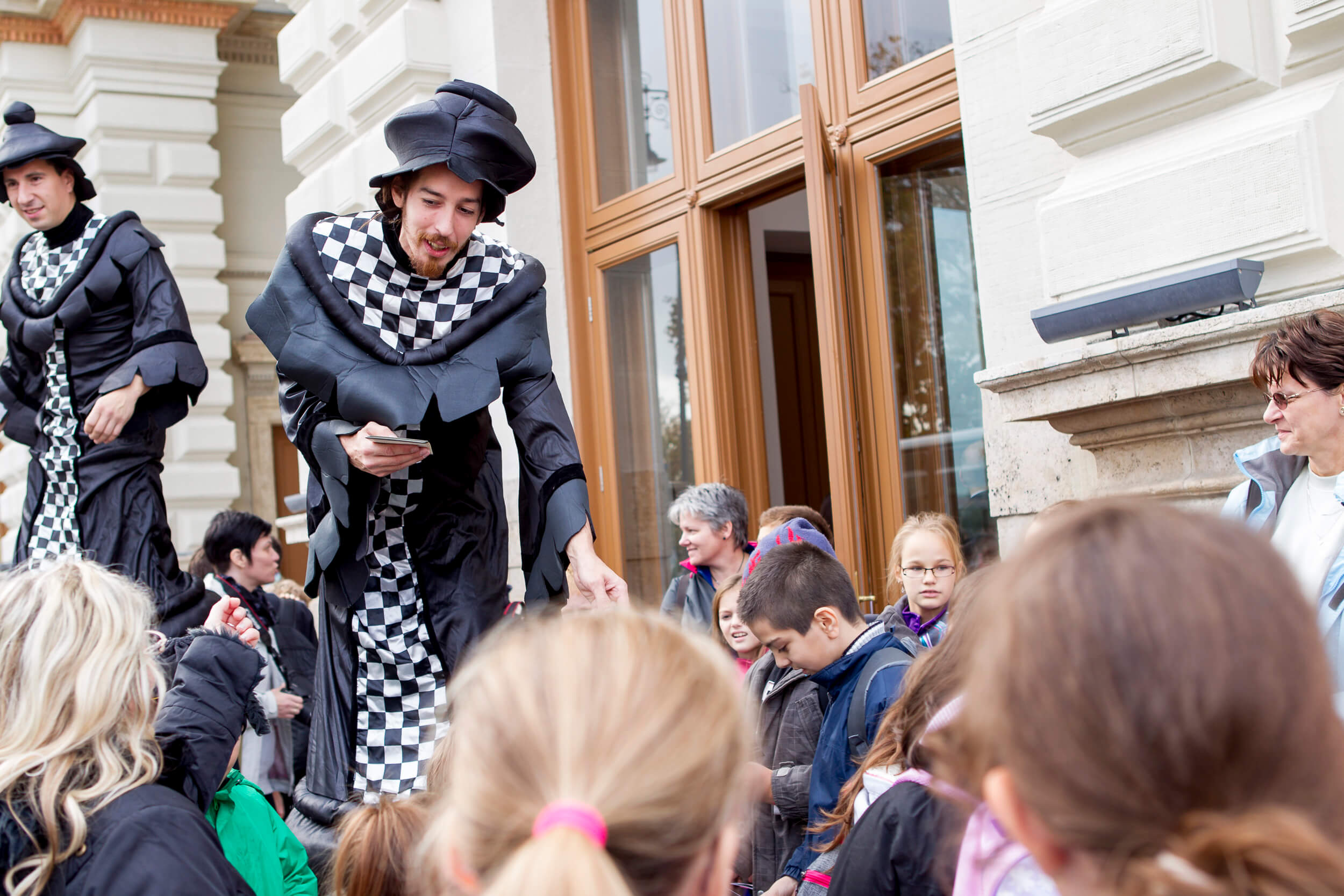 Stilt walker exhibition pictures